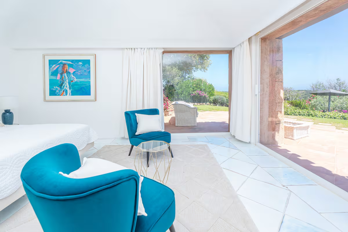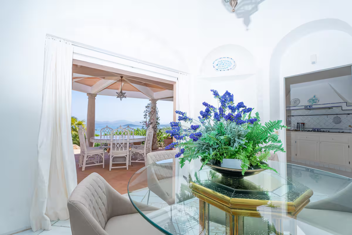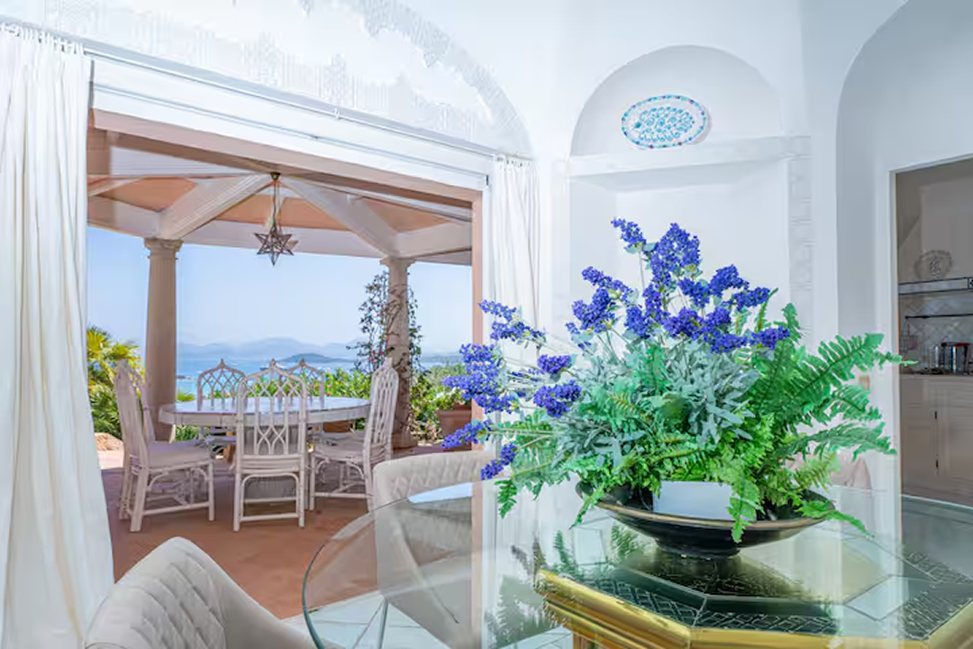 La villa, circondata da un ampio giardino mediterraneo, è stata progettata per offrire un’atmosfera di assoluto comfort e ricercatezza. Gli interni, caratterizzati da materiali naturali come le rocce bianche della Costa Smeralda, le tonalità chiare e le ampie vetrate, creando continuità con il giardino esterno.