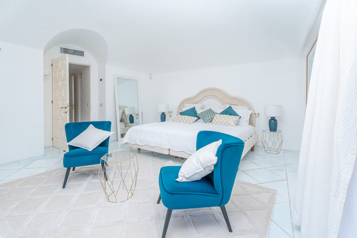 La villa dispone di quattro suite con letti matrimoniali, ampie e luminose, ciascuna con accesso diretto agli spazi esterni o con splendidi affacci sulla natura circostante. In tutte le camere è presente un armadio per riporre i vostri capi di abbigliamento preferiti. Inoltre, sono presenti quattro bagni en-suite, tutti dotati di WC, lavabo, doccia e bidet, moderni e curati nei dettagli, oltre a un piccolo bagno di servizio comodo per gli ospiti.