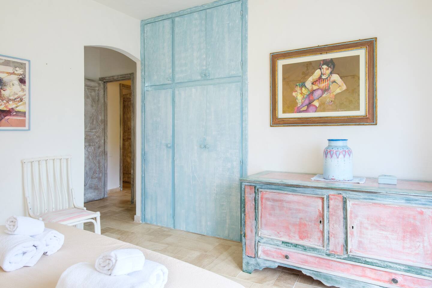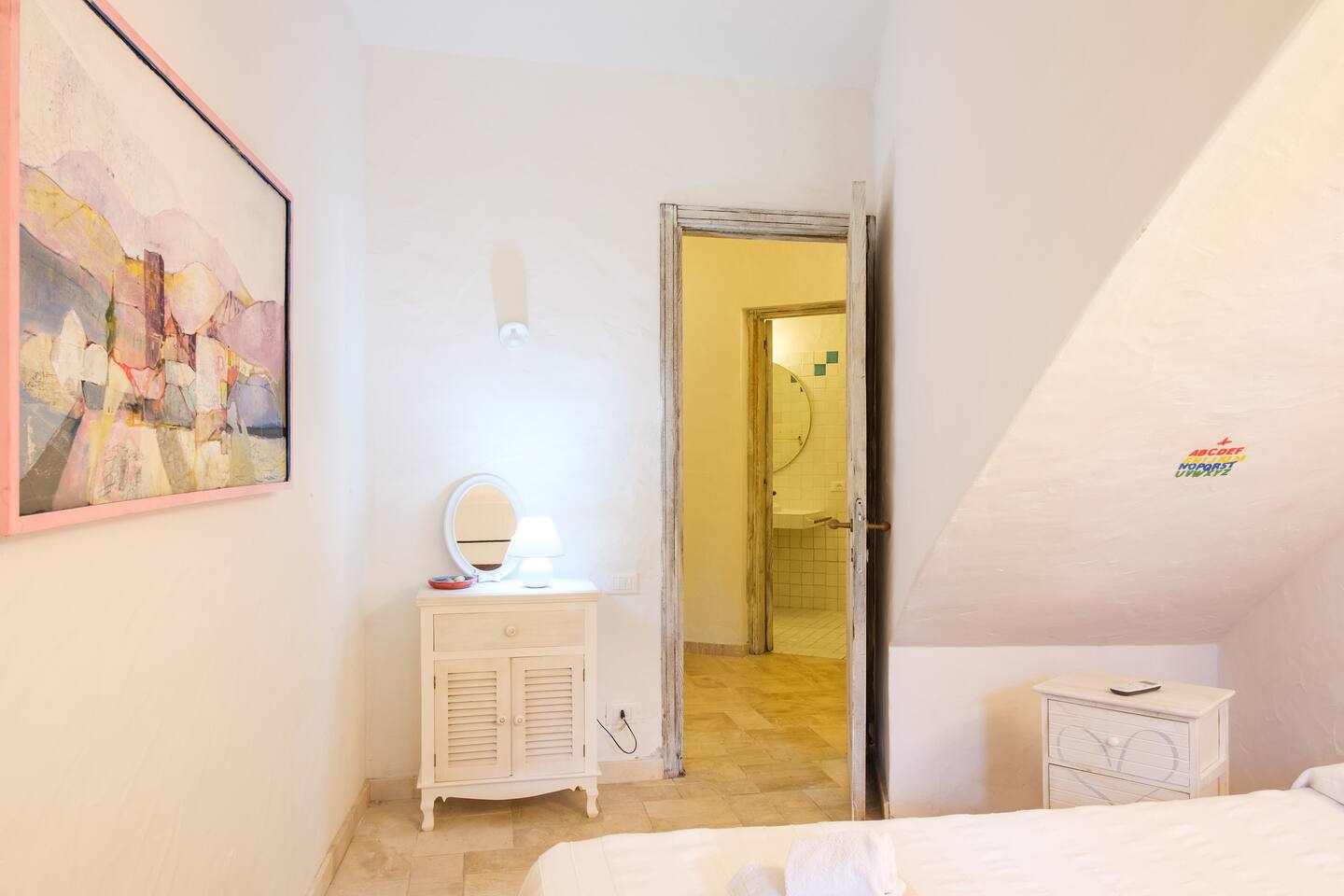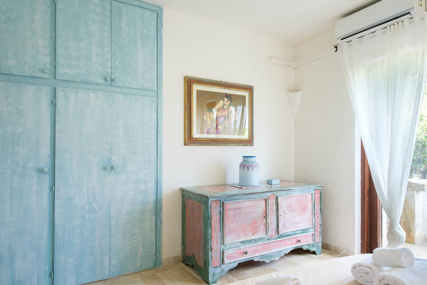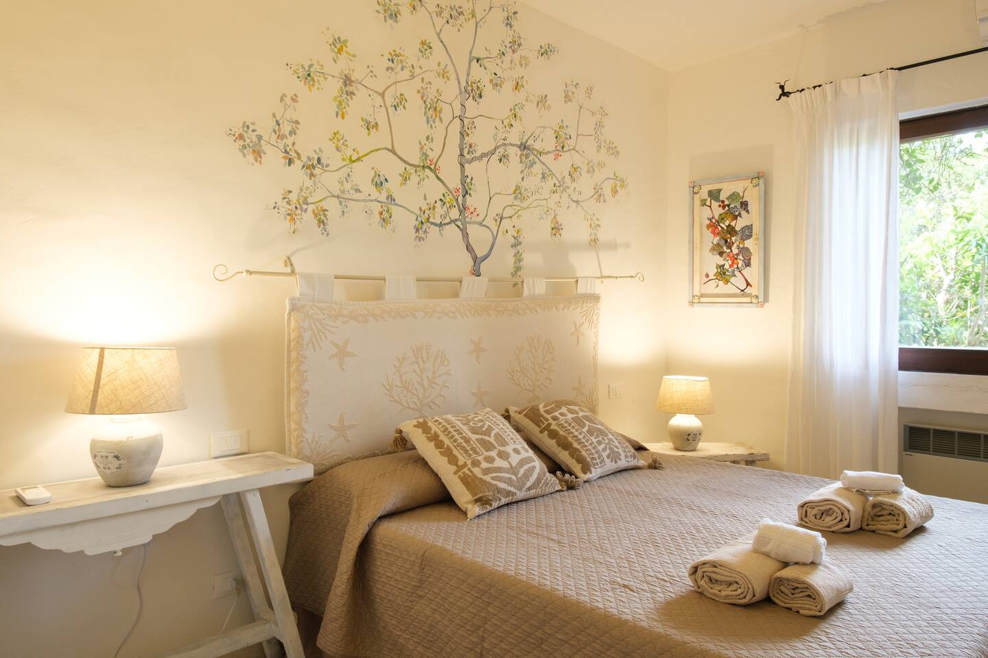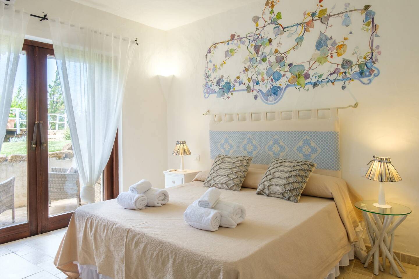 La zona notte si trova al piano sottostante e si compone di 4 belle camere matrimoniali di cui due hanno accesso diretto al giardino e dispongono di bagno ensuite con finiture di pregio come rivestimenti in pregiato Marmo di Orosei e ceramiche della Cerasarda. ..