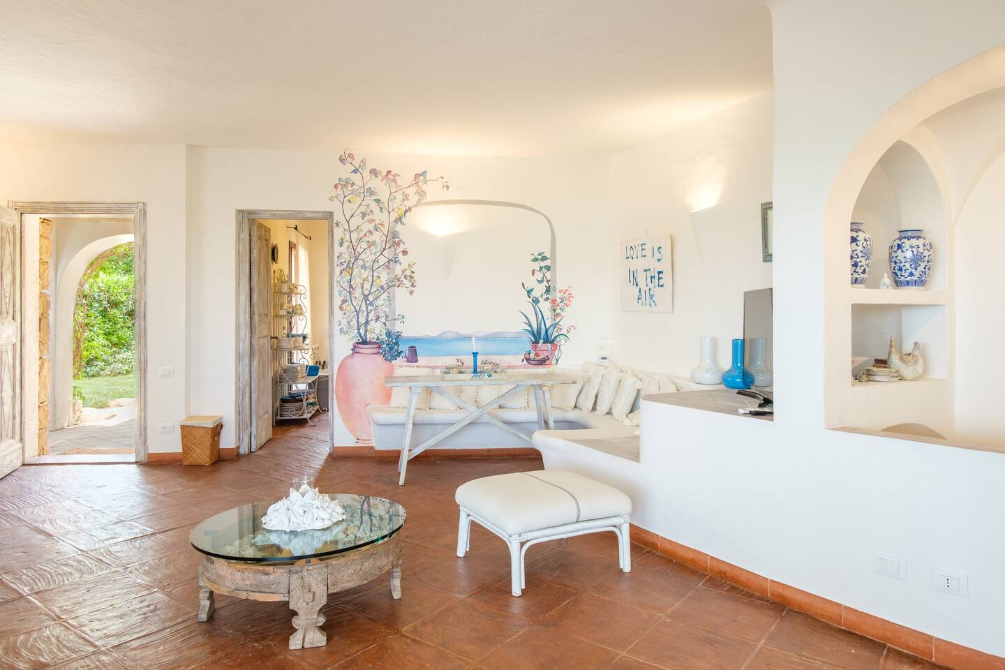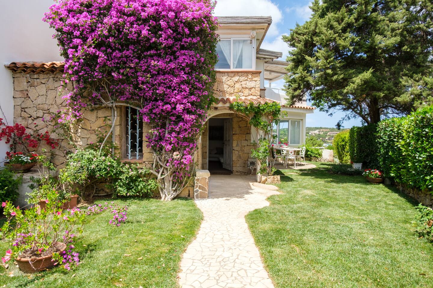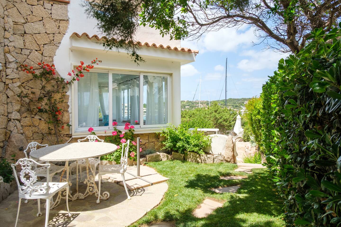 La villa è immersa in un curatissimo giardino, ricco di prato all’inglese, vegetazione mediterranea e bellissimi bouganvillea.