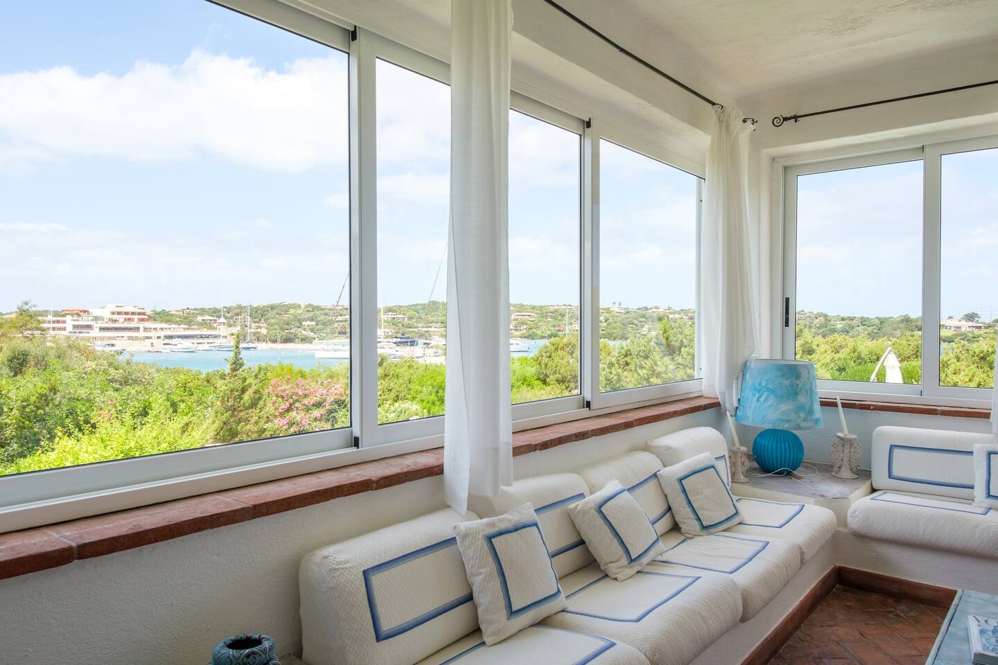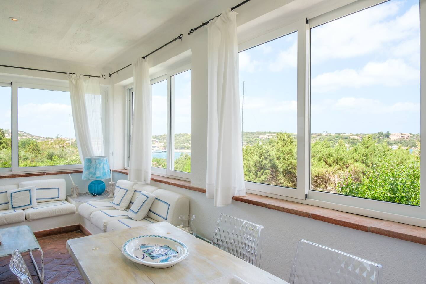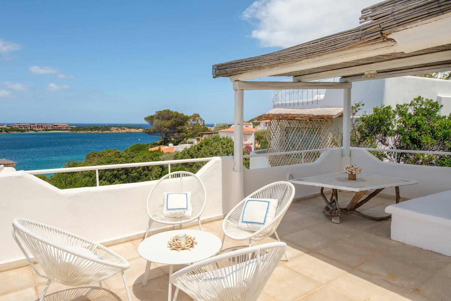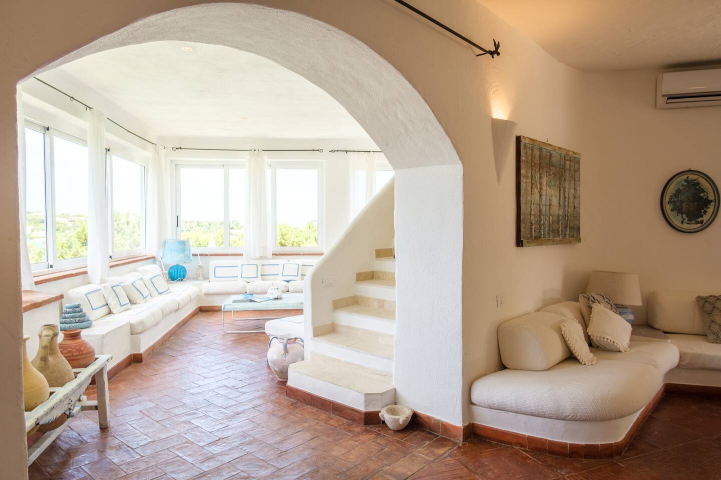 Al piano superiore troviamo un’altra bella zona living, con ampi salotti, tavolo da pranzo e grandi vetrate, dalla quale si acceda alla meravigliosa terrazza con vista mozzafiato sul mare..